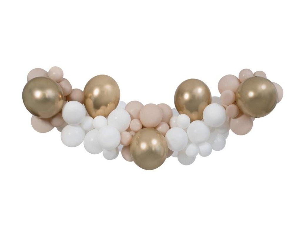 Balónková girlanda v odstínech LATTE / zlatá champagne o délce 3m. Balení obsahuje 65ks balónků + 3m pásky.