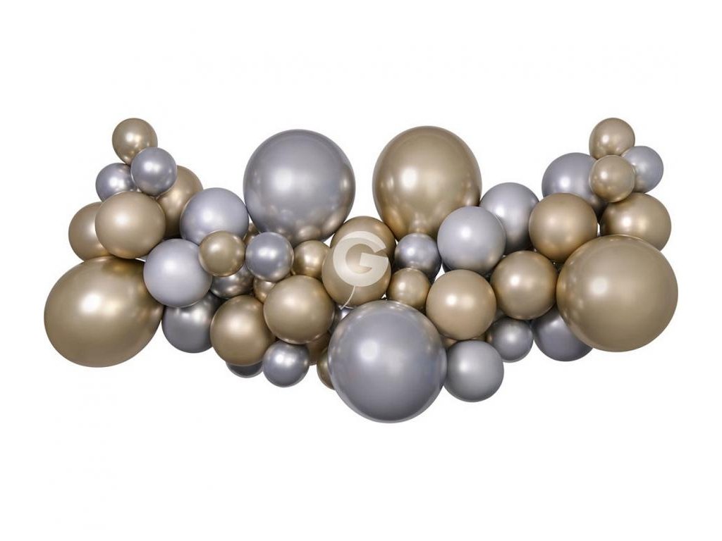 Balónová lesklá girlanda stříbrné a zlaté barvy o délce 3m. Balení obsahuje 65ks balónků.