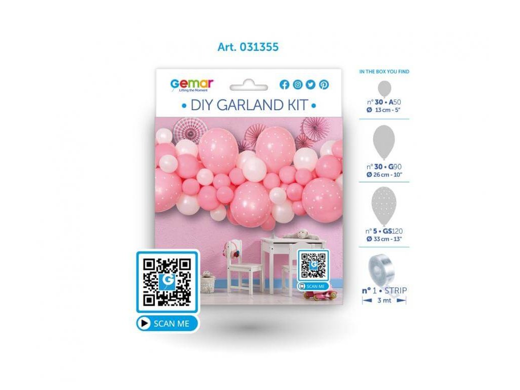 Balónková girlanda BABY růžové a bílé barvy. Délka girlandy je 3m a obsahuje 65ks balónků.