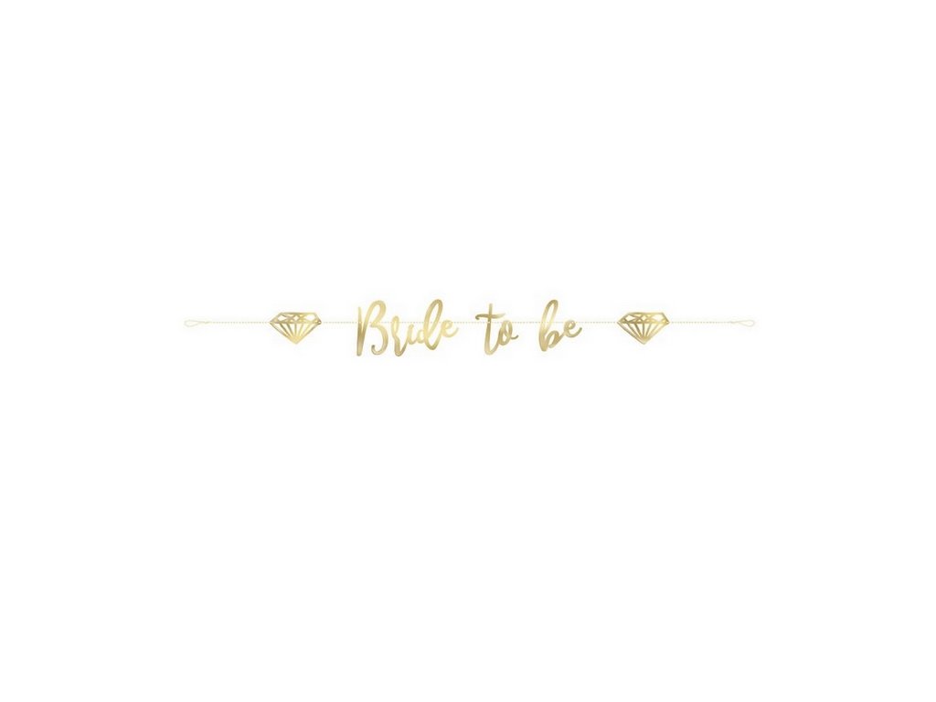 Papírový banner se zlatým nápisem Bride to be a dvěma diamanty na ozdobné šňůrce. Celková délka cca 182cm, výška cca 10cm.