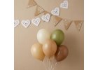 - Kvalitní nafukovací balónky v přírodních barvách (krémová, béžová, písková, olivová, hnědá) pro wow efekt a instagramový vzhled