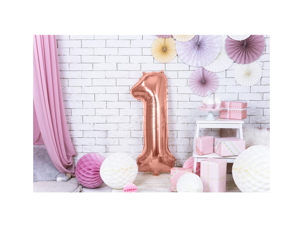 Růžově zlaté nafukovací číslo "1" vylepší každou oslavu. Z fóliového balónku číslo snadno poskládáte věk oslavence nebo významné výročí.