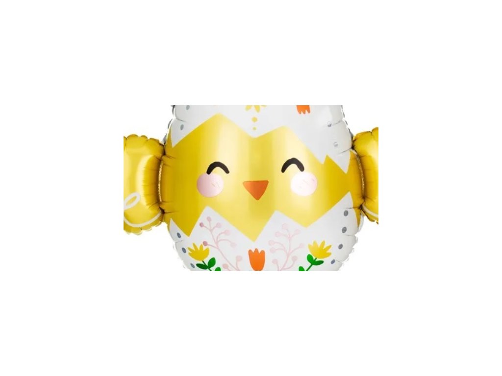 Roztomilý fóliový balónek ve tvaru vajíčka s motivem kuřátka je ideální dekorací na Velikonoce, jarní párty nebo dětské oslavy.