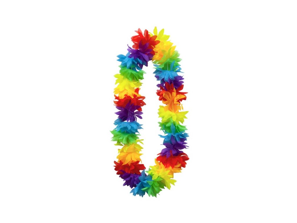 Havajský věnec z barevných střapatých květů, délka 1m.