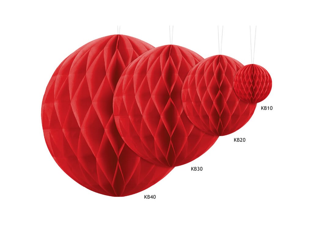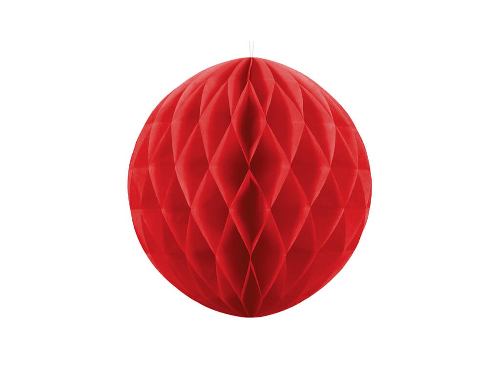 Dekorativní papírová koule červené barvy o průměru 30cm.