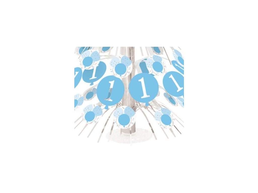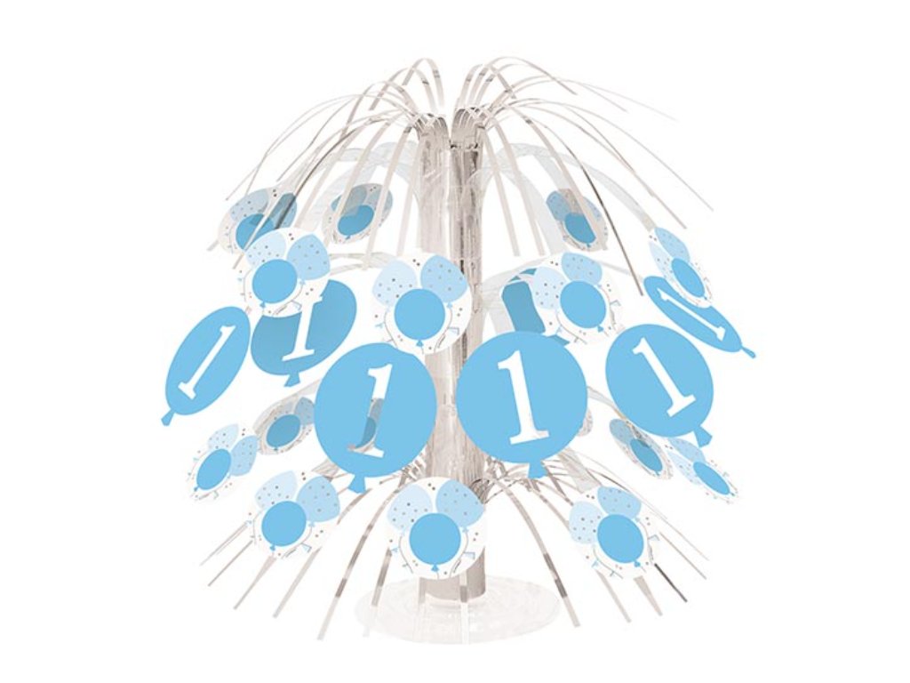 Papírová kaskáda ve stříbrno-modrém provedení určená k oslavě prvních narozenin – dekorována motivem jedniček. S výškou 21,5 cm tvoří efektní stolní dekoraci a díky stabilnímu lehkému podstavci v balení ji snadno postavíte bez rizika převrácení.