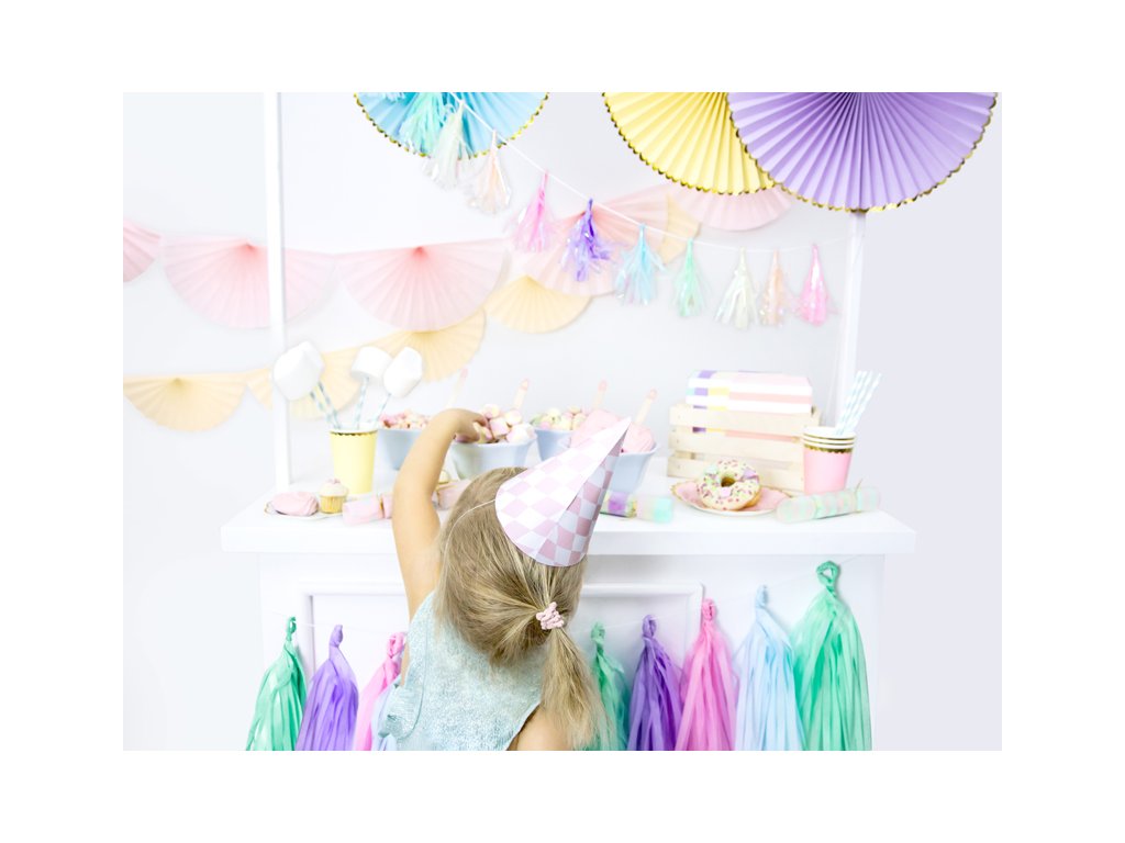 Pastelová střapcová girlanda s perleťovými odlesky, bude skvělým párty doplňkem jakékoliv oslavy. Výška střapců je 12cm a délka girlandy je 1,2m.