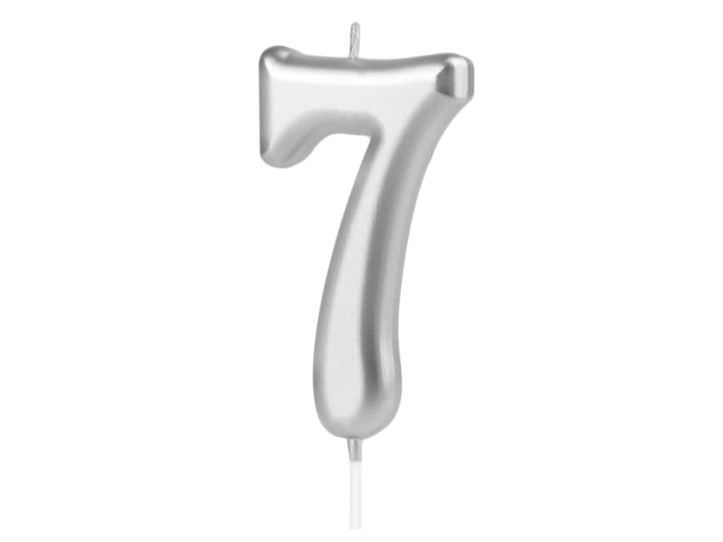 🎂 Svíčka ve tvaru čísla „7“ – stříbrná ✨