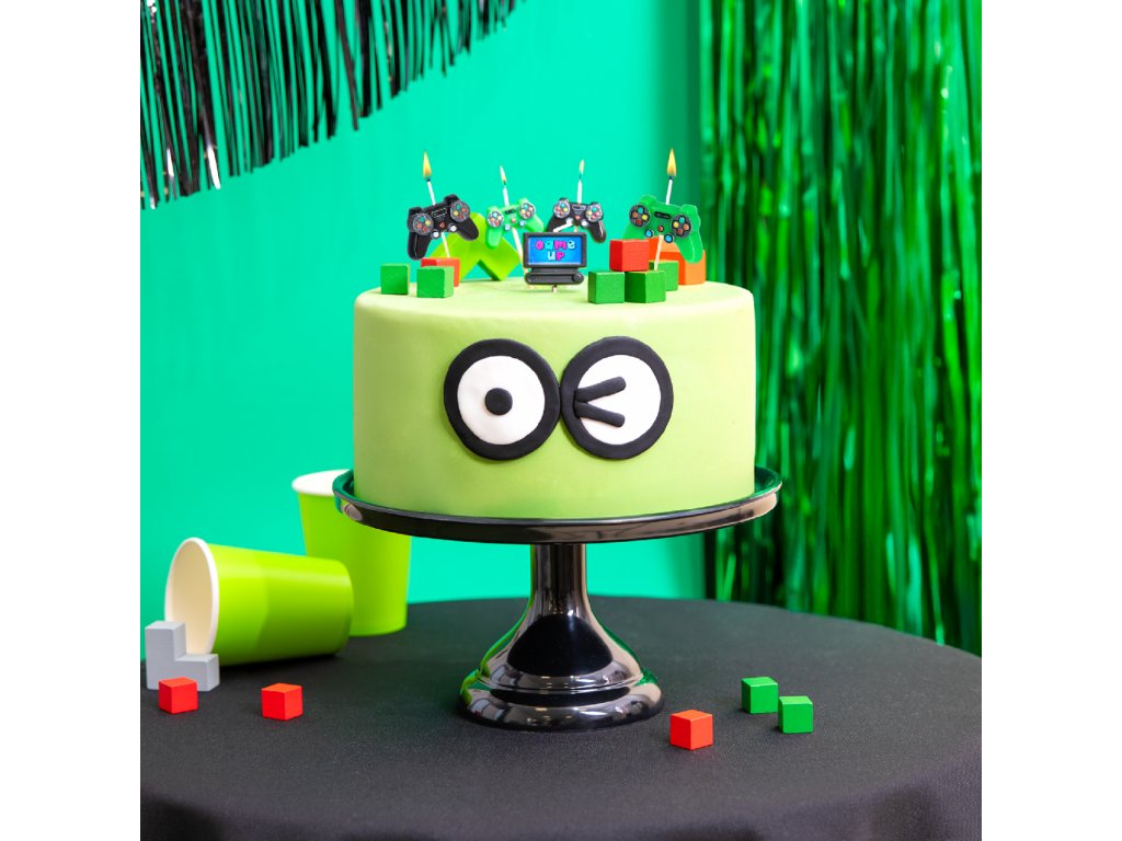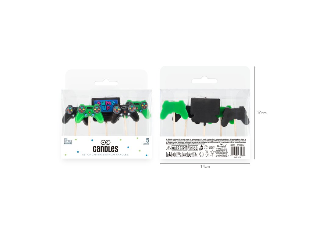 Sada veselých narozeninových svíček ve tvaru herních ovladačů a obrazovky s nápisem " Game Up". Ideální dekorace pro dětskou oslavu nebo party s herní tématikou. Balení obsahuje 5ks.